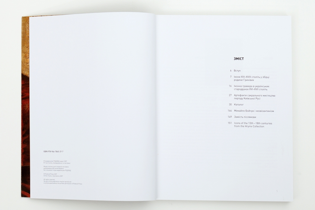 Каталог репрезентує колекцію, що містить чимало унікальних пам’яток. Окрім ікон, які займають у збірці чільне місце, представлені також бібліотека стародруків з гравюрами XVI-XVII століть та артефакти сакрального мистецтва періоду Київської Русі.
